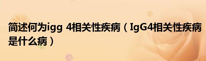 大家好,乐天来为大家解答以下的问题,简述何为igg 4相关性疾病,IgG4相关性疾病是什么病很多人还不知道,现在让我们一起来看看吧!