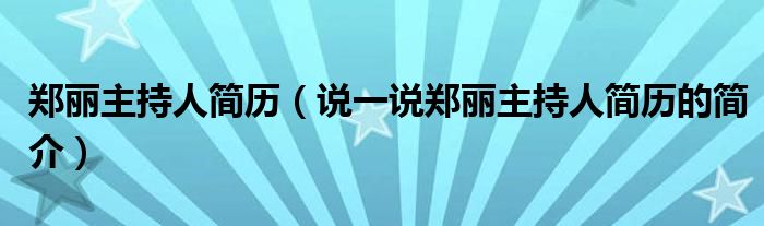 夏弥来为大家解答以下的问题,郑丽主持人简历,说一说郑丽主持人简历的简介,现在让我们一起来看看吧!