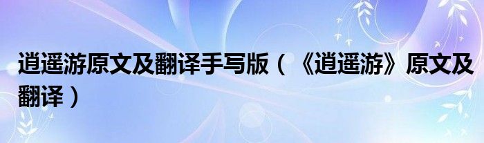 大家好,乐儿来为大家解答以下问题,逍遥游原文及翻译手写版,《逍遥游》原文及翻译很多人还不知道,现在让我们一起来看看吧!