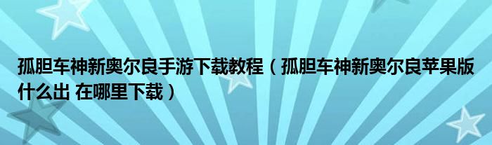 孤胆车神新奥尔良手游下载教程(孤胆车神新奥尔良苹果版什么出 在哪里下载)