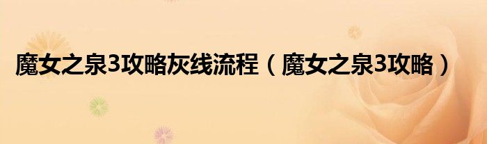 关于魔女之泉3攻略灰线流程,魔女之泉3攻略这个很多人还不知道,今天菲菲来为大家解答以上的问题,现在让我们一起来看看吧!