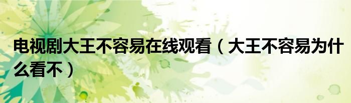 电视剧大王不容易在线观看(大王不容易为什么看不)