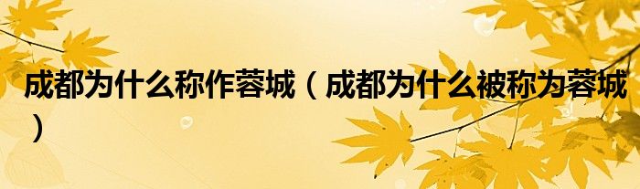 一、成都蓉城名字的由来
