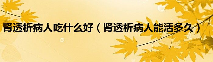 大家好,乐天来为大家解答以下的问题,肾透析病人吃什么好,肾透析病人能活多久很多人还不知道,现在让我们一起来看看吧!
