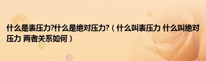 关于什么是表压力?什么是绝对压力?,什么叫表压力 什么叫绝对压力 两者关系如何这个很多人还不知道,今天菲菲来为大家解答以上的问题,现在让我们一起来看看吧!