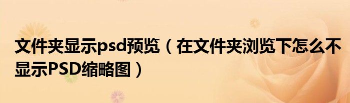 关于文件夹显示psd预览,在文件夹浏览下怎么不显示PSD缩略图这个很多人还不知道,今天菲菲来为大家解答以上的问题,现在让我们一起来看看吧!