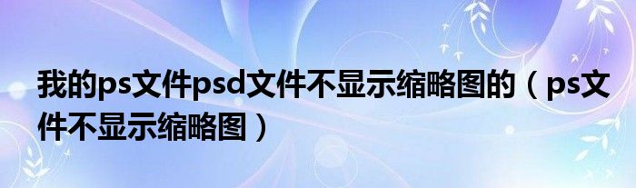 关于我的ps文件psd文件不显示缩略图的,ps文件不显示缩略图这个很多人还不知道,今天菲菲来为大家解答以上的问题,现在让我们一起来看看吧!