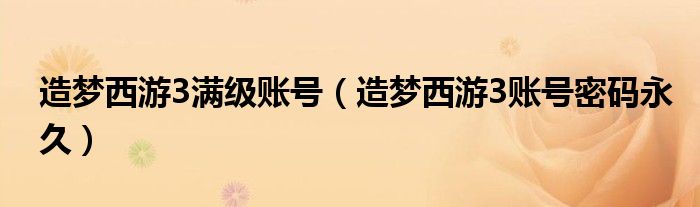 造梦西游3满级账号(造梦西游3账号密码永久)