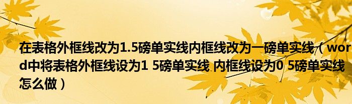 关于在表格外框线改为1.5磅单实线内框线改为一磅单实线,word中将表格外框线设为1 5磅单实线 内框线设为0 5磅单实线怎么做这个很多人还不知道,今天菲菲来为大家解答以上的问题,现在让我们一起来看看吧!