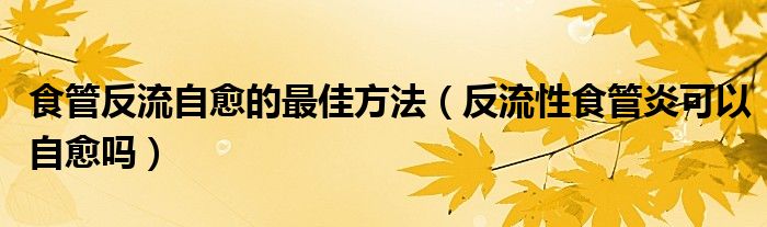 大家好,乐天来为大家解答以下的问题,食管反流自愈的最佳方法,反流性食管炎可以自愈吗很多人还不知道,现在让我们一起来看看吧!
