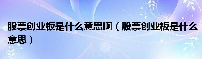 关于股票创业板是什么意思啊,股票创业板是什么意思这个很多人还不知道,今天菲菲来为大家解答以上的问题,现在让我们一起来看看吧!