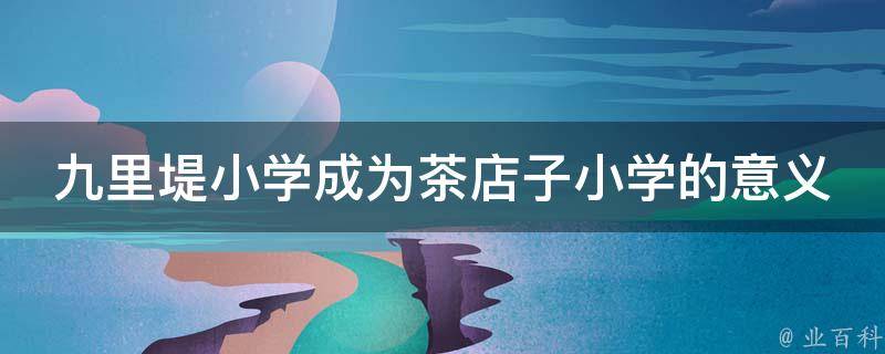 九里堤小学成为茶店子小学的意义是该分校将依托成都市茶店子小学教育集团引领,为片区居民带去更加优质的教育资源。学校依托诸葛文化淡泊明志、宁静致远的教育精髓,潜心培育学生成为志向高远、善学活用、勇于担当的一代新人;九里教师传承诸葛孔明教子良方,坚持爱生如子的职业操守,确立正确的师德观,建立民主和谐的师生关系,公正、平等地对待每一位学生。