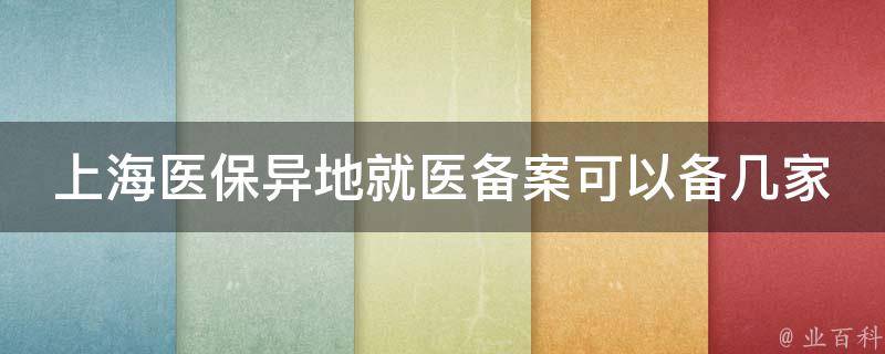 上海医保异地就医备案可以备1到5家。长住异地的参保人员,可填报异地就医申请表。在所选定点医院发生的住院医疗费用,按医院等级负担起付金,不降低报销比例。需要注意,未办理异地就医手续,在异地所发生的医疗费用,医保基金不予支付。