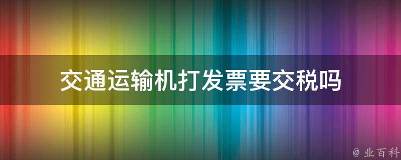 交通运输机打发票要交税,需要交增值税和附加税。国家税务通用机打发票的税率是以单位的主营税率来计算销售税额的。通用机打发票是指在购销商品、提供或接受服务以及从事其他经营活动中,所开具和收取的收付款凭证。