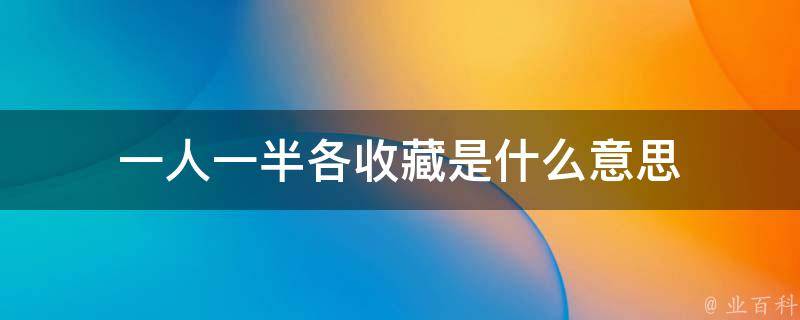 一人一半各收藏是形容两个人共同分担某种财物或物品,每个人都保留一部分。假设有两个人共同购买了一本书并决定各自保留一半,那么他们会将这本书分成两个部分,每个人保留其中的一部分。这样他们都拥有了书的一部分,而无需单独购买。
