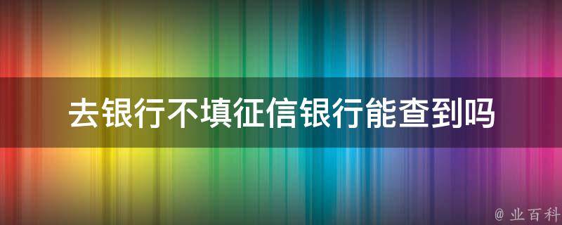 去银行不填征信银行能查到。通常情况下,银行在与客户进行业务交互时,会使用征信系统来评估客户的信用状况和信用记录。征信系统可以提供个人或企业的信用信息,包括贷款记录、信用卡使用情况、逾期还款等。银行可以依靠征信系统来查询个人名下的贷款情况。