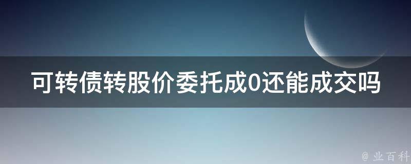 可转债转股价委托成0不能成交。在许多交易所中,如果以0元的价格委托可转债转股价,通常可能很难成交。这是因为交易所要求价格挂单必须是合理和有意义的,而0元的价格在市场上被认为是不合理的。交易所通常会设定价格范围或限制,确保市场交易价格在合理的范围内。此外,即使在某些情况下您的价格委托被接受,也不能保证会立即成交。成交是否发生取决于市场的供需情况以及其他参与交易的买方和卖方的意愿。