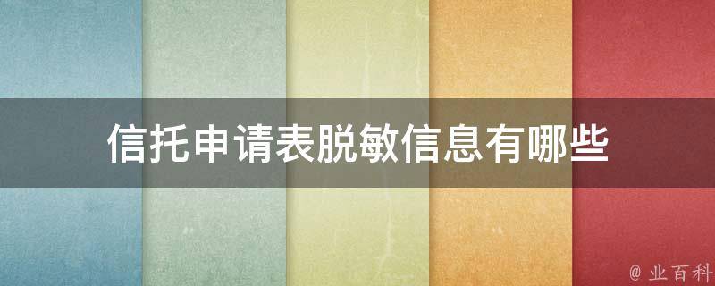 信托申请表脱敏信息有姓名、身份证号码、联系方式、家庭地址、银行账号、职业和工作单位。注意在脱敏个人信息时,需要确保脱敏后的信息无法被还原成原始数据,同时保持基本的信息可读性,以满足数据保护和隐私安全的要求。