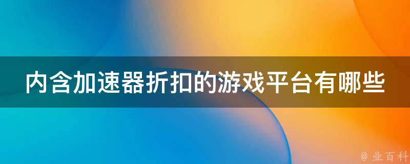 1、Steam:Steam是一款流行的数字发行平台,提供多种游戏并且经常会进行折扣促销活动。可以浏览Steam商店的特价页面,寻找提供内含加速器折扣的游戏。