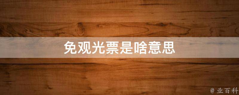 免观光票指的是某种特定活动、景点或场所提供的免费入场券或门票。这意味着您可以在不支付任何费用的情况下进入该景点或参加该活动。一些旅游景点、博物馆、公园、展览等都可能会提供免观光票的特殊活动或促销,这通常是为了吸引更多的游客。
