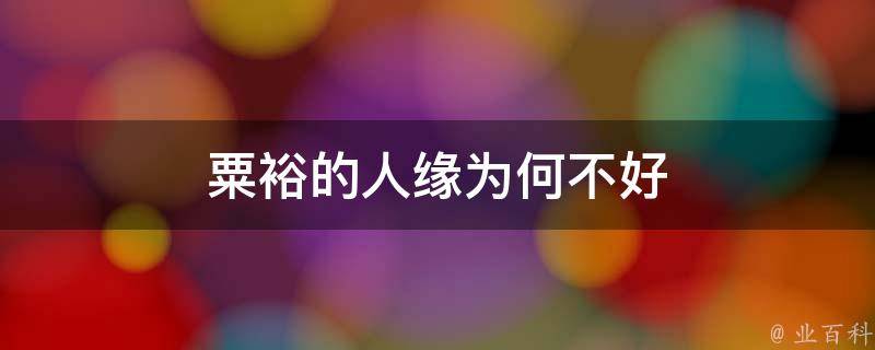 粟裕的人缘不好是因为他不善于处理人际关系,太过直爽,不懂得迂回处理问题,习惯于直来直去的战场,遇事固执己见,容易与人起争执,即使对方是他的顶头上司。他把所有的精力都放在了带兵打仗上,他在在革命中功劳巨大,无人能及。