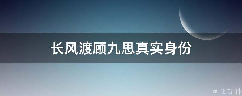 长风渡顾九思真实身份是江南首富之子。顾九思,电视剧《长风渡》中的角色,该角色由内地男演员白敬亭饰演,剧中为名满扬州的纨绔。顾九思看似性格懒散,纨绔不羁,其实他心怀大志,重情重义,一直在扮猪吃老虎。