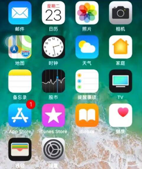 4、在桌面上点击“设置”图标,向下滑,找到并点击“音乐”。