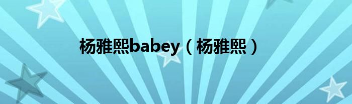 大家好,小联来为大家解答以上的问题。杨雅熙babey,杨雅熙这个很多人还不知道,现在让我们一起来看看吧!