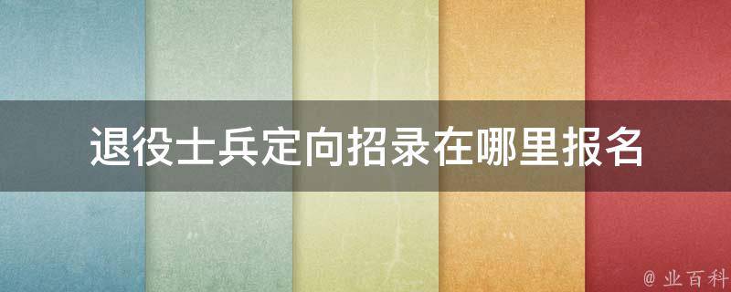 退役士兵定向招录在当地人事考试网报名,具体的网站和报名时间要关注政府发布的官方消息。考试的公共科目笔试将在全国各直辖市、省会城市、自治区首府和部分较大的城市同时举行。注意报名时间逾期不予受理,请随时关注信息。