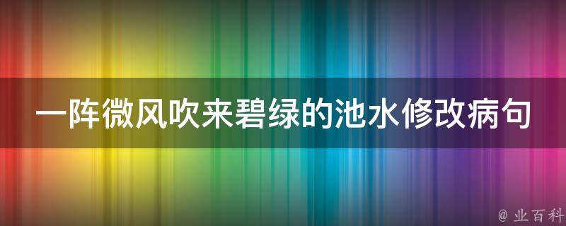 一阵微风吹来碧绿的池水改为:一阵微风吹来,碧绿的池水泛起层层涟漪。如果只说了碧绿的池水,而没说出碧绿的池水经过这阵微风的吹拂变得怎么样了,只有主语没有谓语,没有表达出一个完整的意思,因此就不能成为一句话,所以一阵微风吹来碧绿的池水是病句。