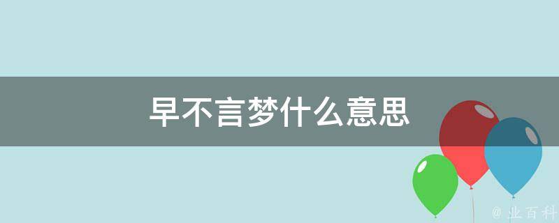 早不言梦的意思是在早上的时候,不要把前一天晚上做过的梦说出来。通常来说,晚上做的梦大部分都是白天所想,而且有一些还是比较不好的梦,对于第二天的情绪和思想都会造成一定的影响,因此建议尽量不要说出来。