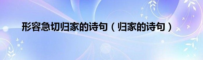 大家好,小联来为大家解答以上的问题。形容急切归家的诗句,归家的诗句这个很多人还不知道,现在让我们一起来看看吧!
