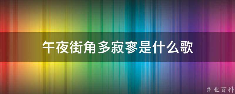 午夜街角多寂寥是歌曲《此生最难忘》里的歌词,是歌曲最开始的那一句。《此生最难忘》收录于专辑《此生最难忘》中,由歌手黄昏歌厅、宋天存、陈雪演唱,由ZoneJay作词,什么鹏作曲,编曲由赖奕宾负责,任天宇混音,王淑霖和声。