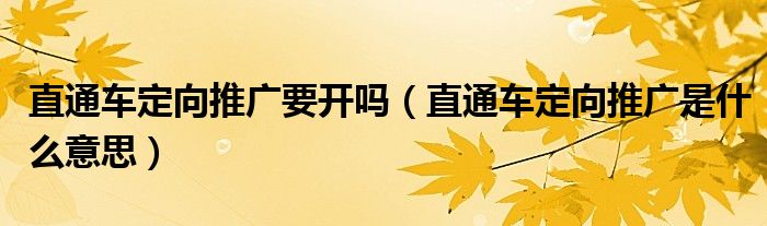 关于直通车定向推广要开吗,直通车定向推广是什么意思这个很多人还不知道,今天菲菲来为大家解答以上的问题,现在让我们一起来看看吧!