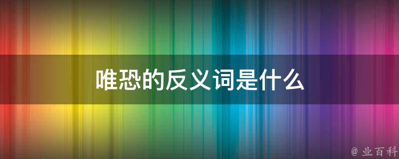 唯恐的反义词是放心。唯恐的意思是唯独害怕,只怕某一事物。出自《贯彻调整方针,保证安定团结》:这种混乱状况确实给一些唯恐天下不乱的人的活动,提供了一方面的有利条件。近义词有恐怕、畏惧、惧怕、生怕、生恐。