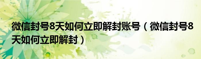 关于微信封号8天如何立即解封账号,微信封号8天如何立即解封这个很多人还不知道,今天菲菲来为大家解答以上的问题,现在让我们一起来看看吧!