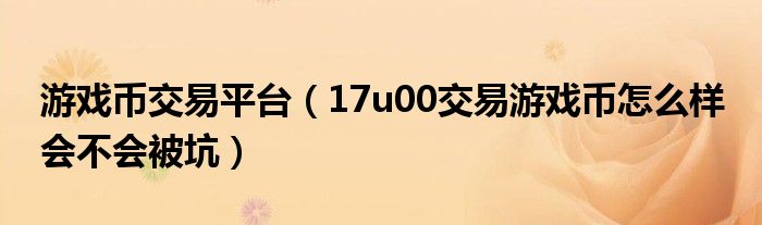 关于游戏币交易平台,17u00交易游戏币怎么样 会不会被坑这个很多人还不知道,今天菲菲来为大家解答以上的问题,现在让我们一起来看看吧!