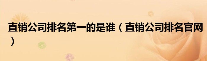关于直销公司排名第一的是谁,直销公司排名官网这个很多人还不知道,今天菲菲来为大家解答以上的问题,现在让我们一起来看看吧!