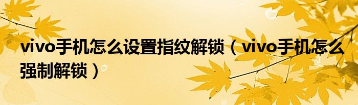 关于vivo手机怎么设置指纹解锁,vivo手机怎么强制解锁这个很多人还不知道,今天菲菲来为大家解答以上的问题,现在让我们一起来看看吧!