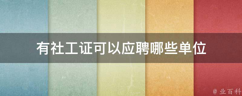 有社工证可以应聘公务员岗位系统、社会保障或社会福利类事业单位有关岗位、和社会保障或社会福利有关的群团组织以及有关民间组织的有关岗位、社区居委会的工作岗位、民间社会服务机构等。整体来看,我国社会工作者工资待遇还不算太高,不过随着社会工作的发展,社会工作这个行业就业前景和发展潜力是十分巨大的。