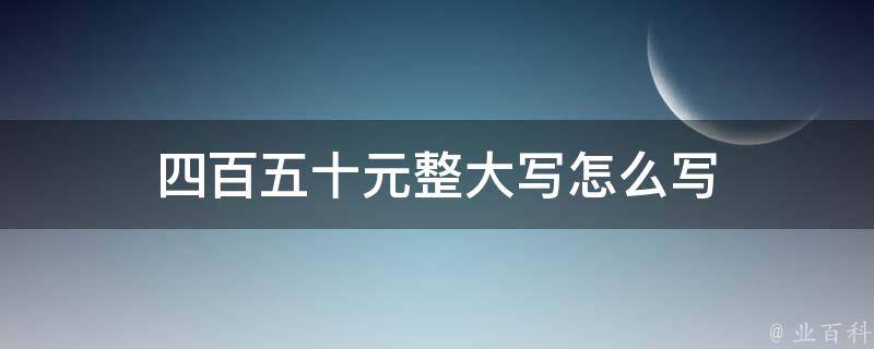四百五十元整大写为肆佰伍拾元整。大写数字是和小写数字的读音一样的文字。中文大写金额数字前应标明人民币字样,且和数字不得留有空白。这种方式利用与数字同音的汉字取代数字,以防止数目被涂改。