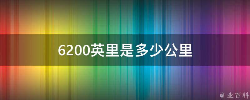6200英里是9977.9328公里。1英里=1.609344公里,1公里=0.6213712英里。英里只使用于英国、其前殖民地和英联邦国家,而其他国家或地区则使用国际单位制,即米制,又称为公制。