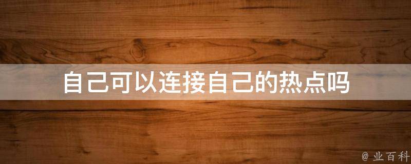自己可以连接自己的热点。在设置中,我们可以将自己的手机设置为一个热点,然后通过另一个设备来连接该热点来共享网络。具体操作因手机品牌和系统版本而异,可以参考手机说明书或者搜索相关教程进行操作。