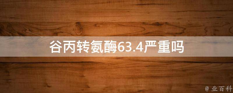 谷丙转氨酶63.4不严重。谷丙转氨酶正常值是0-40U/L,63U/L偏高,属于轻微,可能是由于喝酒、药物刺激、病毒性肝炎等因素导致。应清淡饮食多喝水,尽量避免食用辛辣刺激性食物和油腻油炸食品,减少饮酒量、多运动,注意多休息,避免熬夜。