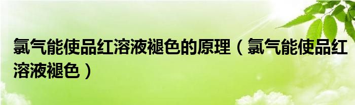 大家好,小联来为大家解答以上的问题。氯气能使品红溶液褪色的原理,氯气能使品红溶液褪色这个很多人还不知道,现在让我们一起来看看吧!
