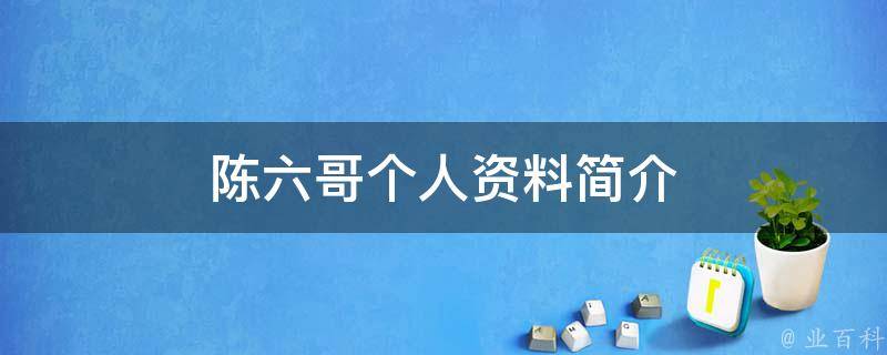 陈六哥是广西博白县文地镇人,1970年出生,因家境贫困,没读多少书,长大后四处打零工。他做生意时认识了一些有钱的朋友,经常和这些人在一起,他的老婆就给他起了个外号六哥。他在成为网红之前,做过很多工作,如进厂、做保安、送煤气等。他在快手平台上发布的搞笑视频,语言幽默、创意新颖,获得了众多网友的喜爱。