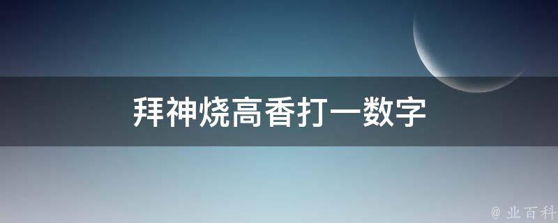 拜神烧高香打一数字是3,因为拜神烧香时通常会点三根香,所以,拜神烧高香打一数字是3。在数字谐音中,3代表的是想念、生命、生活。另外,4代表是的、时时;5代表我、无,也可以理解为不分你我;6代表顺利、溜达。