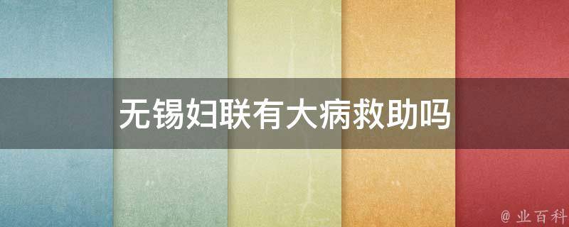 无锡妇联有大病救助。妇联重大疾病救助,成为大病特困妇女缓解治病压力、改善生存环境、提高生活水平的有效途径。符合救助条件的人员须本人或监护人在救助对象经农村合作医疗等各种医疗报销和补偿后,于每季末向户籍所在地村(居)委会提出书面申请。