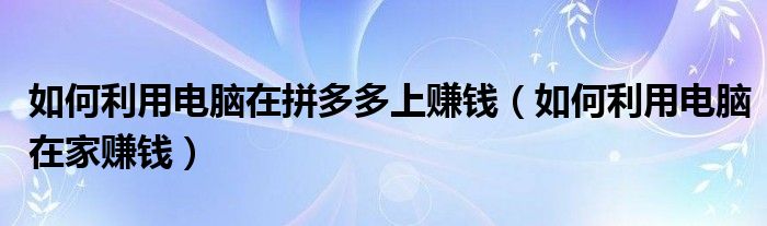 大家好,小华来为大家解答以上的问题。如何利用电脑在拼多多上赚钱,如何利用电脑在家赚钱这个很多人还不知道,现在让我们一起来看看吧!