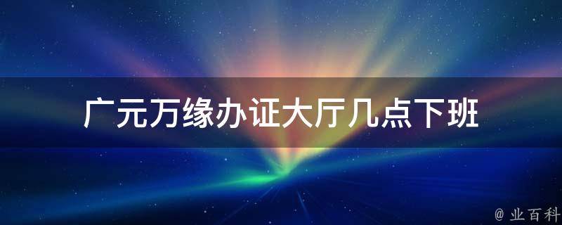 广元万缘街道办证大厅的下班时间为17:30。该服务中心的上班时间为周一至周五的9:00至17:30。建议根据自己需要办理的业务提前准备好相关材料,并尽量在下午4点前到达服务中心,以免因为时间问题无法完成办理。